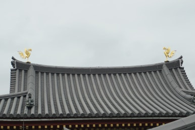 뵤도인은 원래 귀족의 별장이었습니다. 후지와라노 요리미치(藤原頼通)가 아버지 미치나가로부터 물려받은 별장을 1052년, 사찰로 전환한 것이 그 시작입니다. 당시 사람들은 불교가 쇠퇴하고 세상이 타락하는 말법(末法)의 시대가 도래했다고 믿었기에, 요리미치는 이곳을 극락 정토로 연결되는 문으로 만들고자 했습니다. 그리하여 이듬해인 1053년, 극락 세계를 주재하는 아미타여래를 모신 불당인 호오도(鳳凰堂)가 세워졌습니다. 건물의 형태는 정면에서 보면 양 날개를 펼친 새처럼 보이며, 지붕 위엔 금빛 봉황 두 마리가 마주한 채 서 있습니다. 이 봉황은 죽음 이후의 재생을 상징하며, 호오도라는 이름 역시 이 봉황들에서 비롯되었습니다. 이 건물은 지금도 일본 10엔 동전 뒷면에 새겨져 있을 만큼, 정토정원의 아름다움을 대표하는 상징입니다.